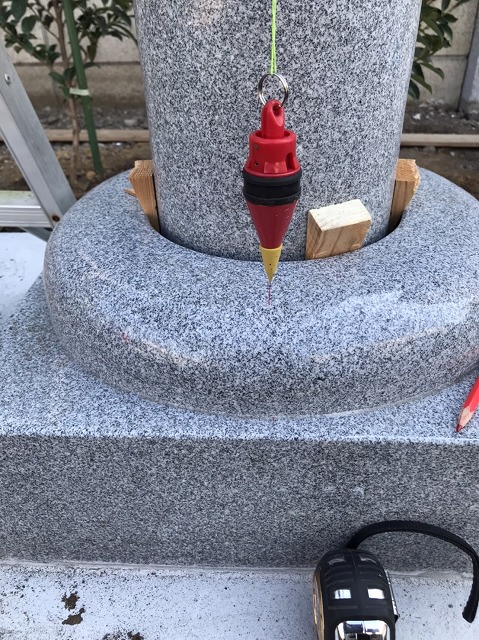 水平や、地盤からどのくらい台を見せるか慎重に取り付けていきます。